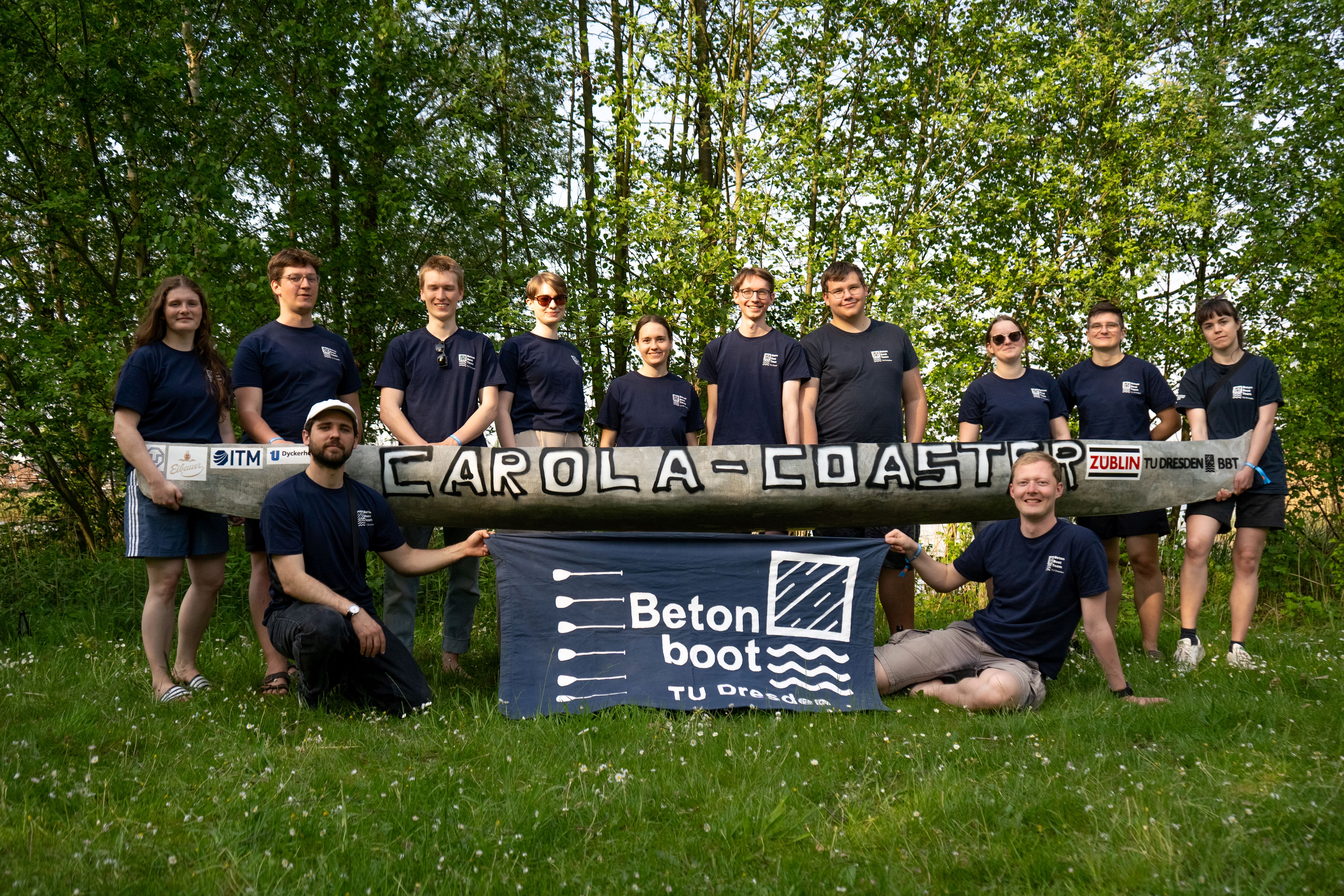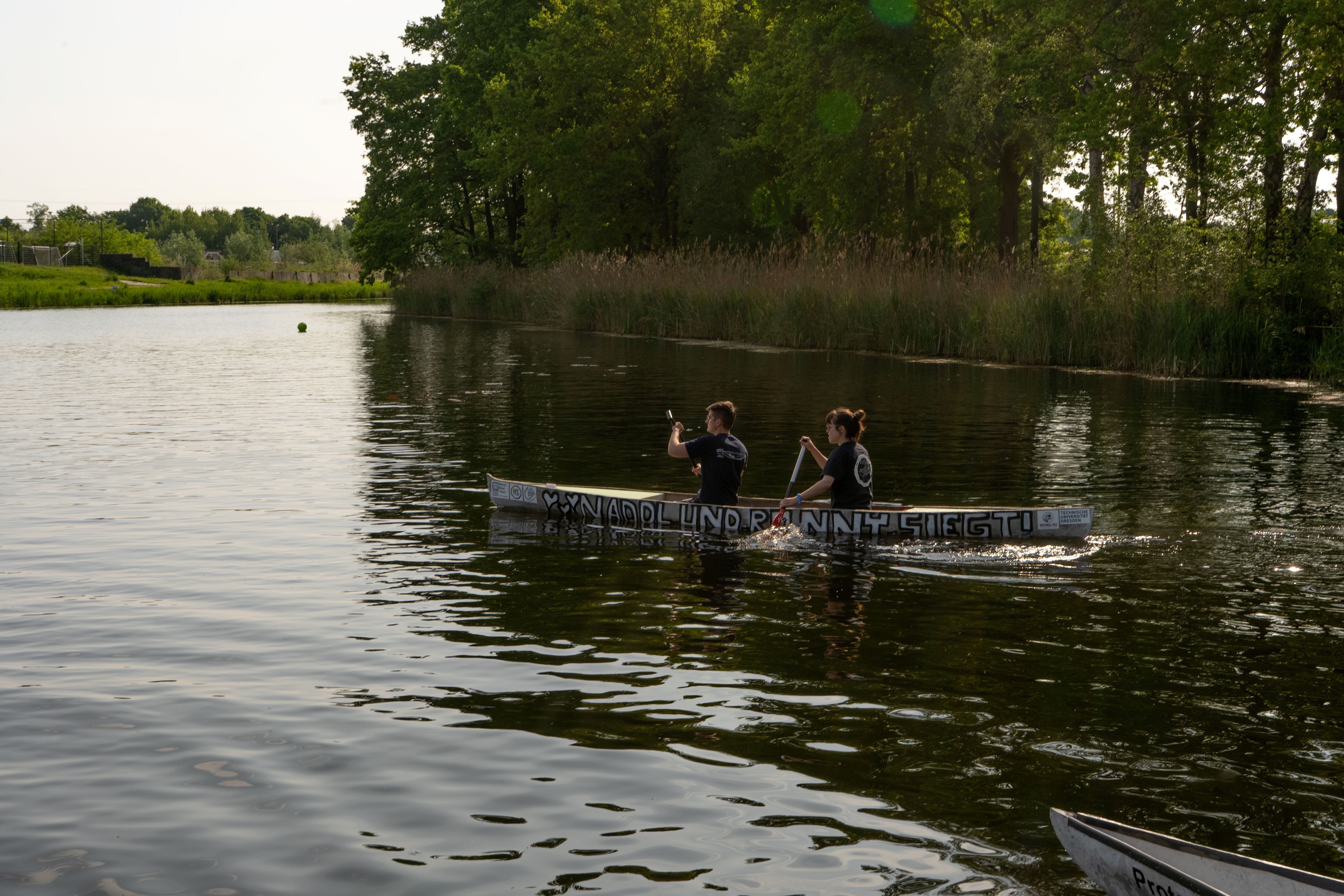 Am langen Wochenende vom 1. bis 4. Mai reisten wir nach Eindhoven in den Niederlanden, um am Concrete Canoe Race 2025 teilzunehmen. Im Transporter dabei: ein betongraues Kanu mit auffälligen, hippen Graffiti-Schriftzügen.